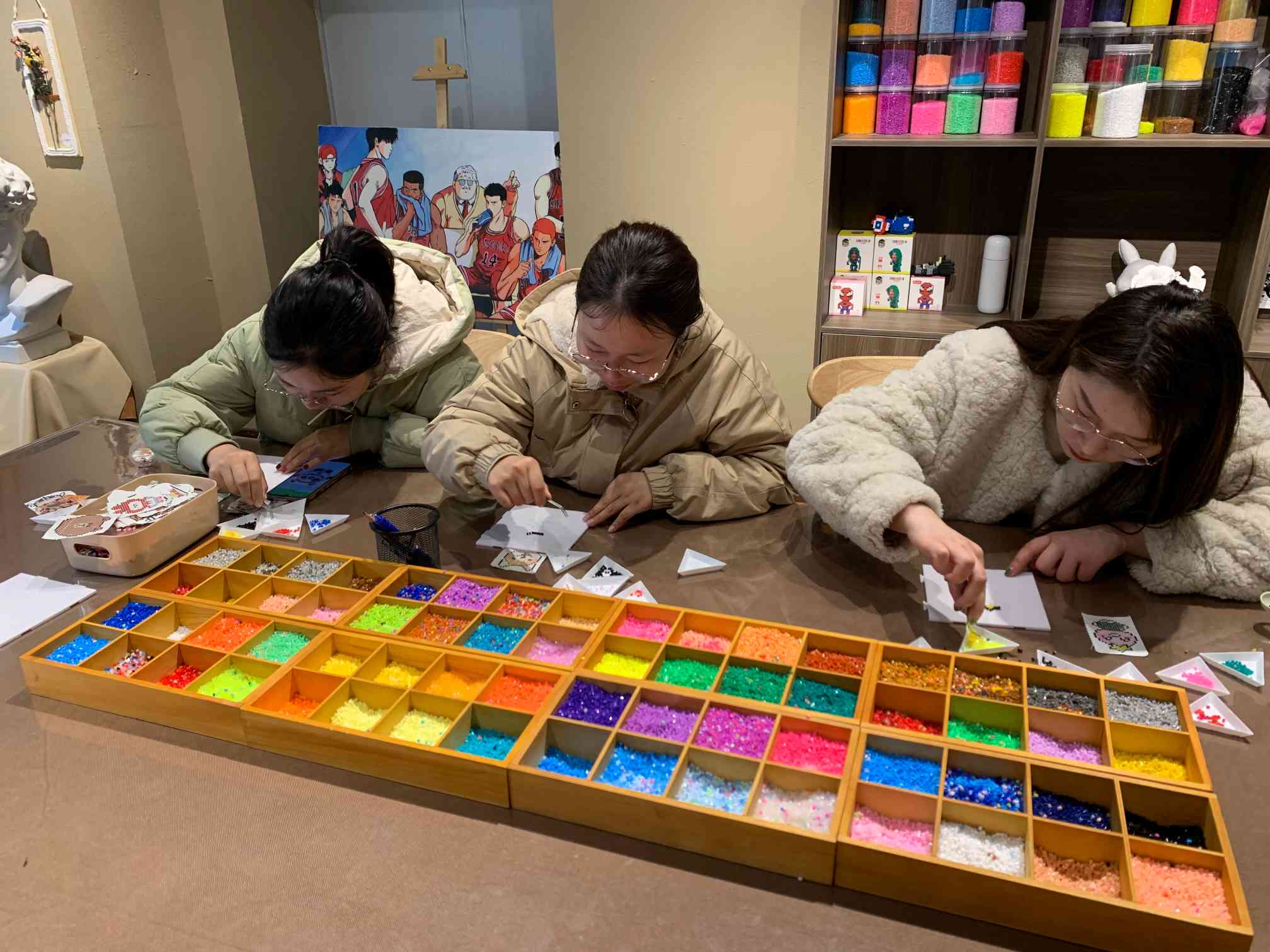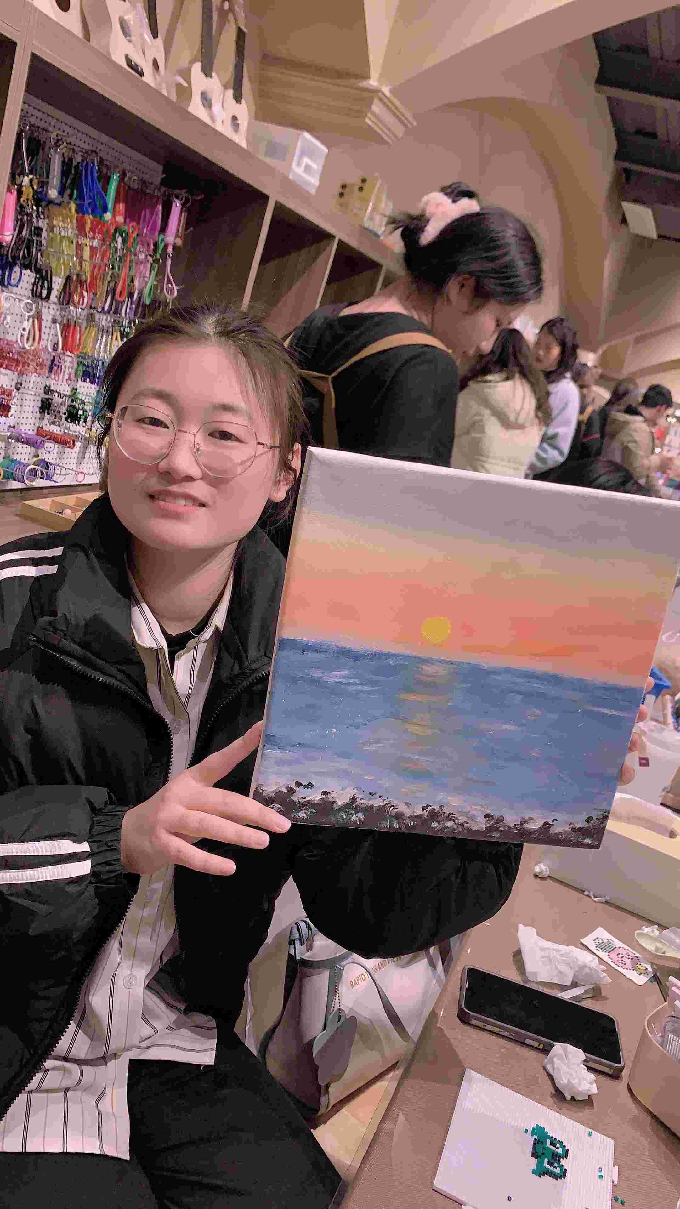 當日下午大家暫時放下手頭的工作,饒有興趣地參加到精彩紛呈的DIY活動中來,近40位小伙伴們一起制作,沉浸在手作的樂趣中。咱們的DIY種類繁多,有繪畫、微型景觀、奶油文具盒、八音盒、香薰蠟燭、拼豆、尤克里里等,每一項DIY項目都排起了長長的隊伍,大家玩的不亦樂乎。